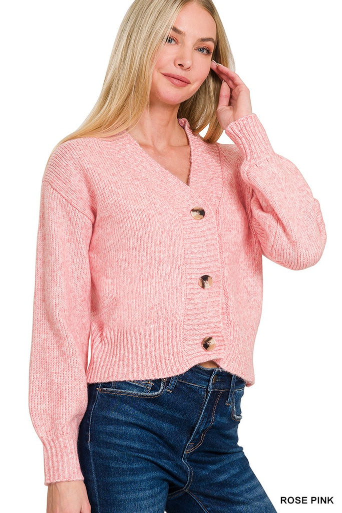 MELANGE DROP SHOULDER BUTTON FRONT SWEATER CARDIGAN